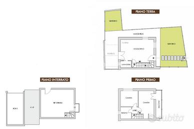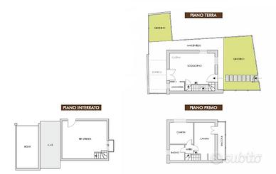 La soluzione riulta composta su due livelli: al piano terra ci accoglie la zona giorno con cucina a 'vista' ,lavanderia,giardiano su due lati e portico; tramite la scala interna saliamo al piano primo dove troviamo due ampie camere e un bagno finestrato.