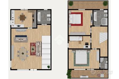 La zona notte al primo piano è composta da una camera matrimoniale con accesso al terrazzo, una cameretta adattabile alle proprie esigenze, un bagno finestrato con la vasca ed una camera matrimoniale con il bagno privato con la doccia e con accesso ad un terrazzo.