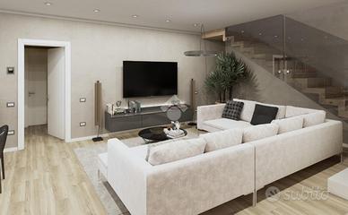 NUOVA PROPOSTA POSIZIONE E SERVIZI Proponiamo una porzione bifamiliare che si trova a Tezze sul Brenta, una località ben servita, con scuole, negozi e tutte le comodità a pochi minuti di distanza. La zona è tranquilla e ben collegata, ideale per famiglie che cercano un ambiente sereno ma vicino alle principali arterie di comunicazione. Questa villetta di nuova costruzione rappresenta la soluzione ideale per chi desidera un'abitazione moderna, funzionale e indipendente, senza rinunciare al comfort e alla qualità. CARATTERISTICHE PRINCIPALI Partendo dal piano terra troviamo la zona giorno di ampie dimensioni, perfetta per vivere in un ambiente luminoso e confortevole. La disposizione degli spazi consente una facile personalizzazione in base alle proprie esigenze. A completare il piano si ha poi un primo bagno finestrato di servizio, con rifiniture moderne e funzionali, la lavanderia separata di 12mq, il ripostiglio, ed infine il garage privato, ampio e comodo per parcheggiare l'auto o come ulteriore spazio di deposito. Al piano primo è situata tutta la zona notte composta da tre camere da letto matrimoniali di cui una con cabina armadio e un secondo bagno finestrato munito di doccia. Esternamente la proprietà è circondata sui suoi tre lati da un giardino privato, per un totale di 200mq di spazio esterno, ideale per un barbecue in compagnia di amici e parenti o per momenti di relax all'aria aperta. Inoltre è presente anche una pompeiana bioclimatica con un'estensione di circa 20mq. DOTAZIONI E COMFORT - Riscaldamento a pavimento, per un maggiore comfort termico e una distribuzione uniforme del calore in tutte le stanze. -Pompa di calore, che assicura una gestione ottimale dell'energia, con notevoli vantaggi in termini di efficienza e risparmio energetico. -Pannelli fotovoltaici installati sul tetto, per ridurre i consumi energetici e contribuire alla sostenibilità ambientale. -Predisposizione per l'aria condizionata, per garantire un clima confortevole in