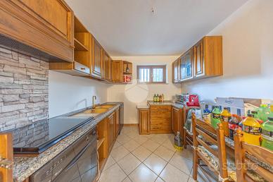 Al piano terra rialzato si sviluppa una zona living luminosa con cucina separata abitabile, recentemente ristrutturata, corredata da bagno anch'esso totalmente rinnovato; un ampio portico di circa 30mq funge da naturale estensione della zona giorno, perfetto per momenti conviviali che conduce direttamente al giardino privato.
