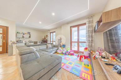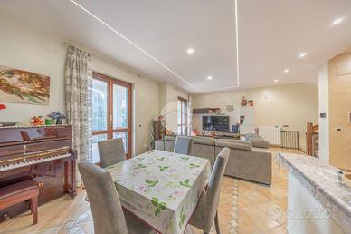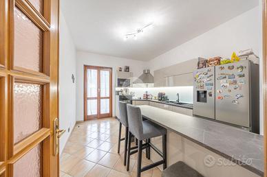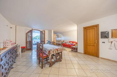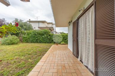 Il giardino privato, di circa 500mq, circonda l'abitazione creando uno spazio verde ben curato dove godere momenti di relax all'aperto, pranzi in famiglia, o semplicemente un luogo di tranquillità immerso nel verde. Il portico offre copertura e protezione dal sole, permettendo di vivere gli spazi esterni anche nelle stagioni più calde. Il box auto con accesso diretto rappresenta un grande vantaggio per chi desidera comfort ed efficienza, mentre i terrazzi e il balcone al piano superiore ampliano la superficie viv
