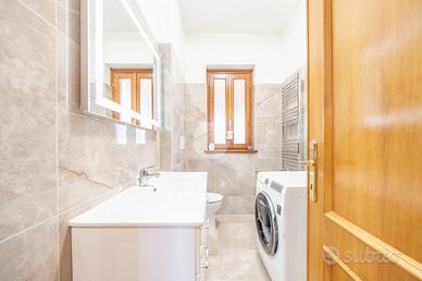 Salendo al piano notte, vi sono tre camere da letto spaziose: due affacciate su un terrazzo panoramico e la terza dotata di balcone, con bagno anch'esso ristrutturato in modo elegante e moderno.