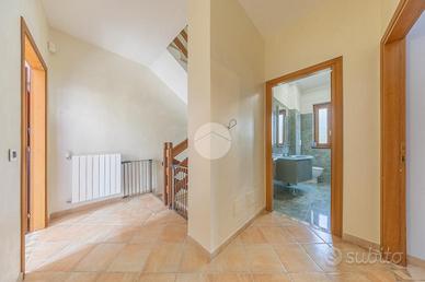 All'interno di un comprensorio residenziale tranquillo e panoramico, proponiamo in vendita una splendida villa bifamiliare disposta su quattro livelli, situata nella zona del Bivio di San Polo, nel Comune di Tivoli.