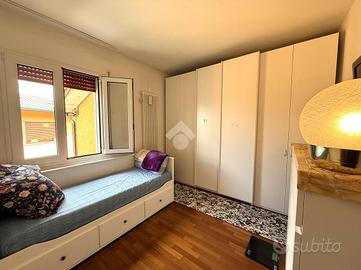 Tombolo, in posizione strategica, comoda a tutti i principali servizi, proponiamo in vendita una splendida porzione di bifamiliare sovrapposta situata al primo e ultimo piano. L'immobile si distingue per gli ampi spazi interni ed esterni, ideali per una famiglia o per chi cerca comfort e privacy. L'abitazione è composta da un luminoso soggiorno con accesso diretto a due terrazzi: uno di dimensioni contenute e uno molto ampio, perfetto per pranzi, cene all'aperto o momenti di relax al sole. La cucina è separata e abitabile. La zona notte comprende una spaziosa camera matrimoniale, una camera singola e due bagni finestrati: uno con box doccia e uno adibito a lavanderia con servizi. Completano la proprietà una comoda cantina al piano interrato. Soluzione ideale per chi desidera vivere in centro paese senza rinunciare a tranquillità, comfort e spazi esterni vivibili.
