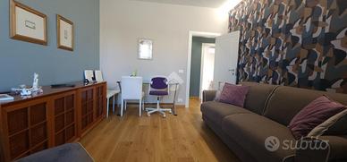 Un comodo disimpegno conduce alla zona notte, dove troviamo una spaziosa camera matrimoniale con cabina armadio e bagno en suite con doccia, ed una seconda camera perfetta come cameretta. Infine troviamo un pratico ripostiglio-lavanderia ed una meravigliosa sala da bagno, quasi un'oasi di stile con piastrelle a mosaico ed eleganti sanitari dal design moderno.
