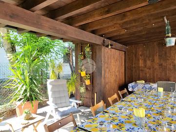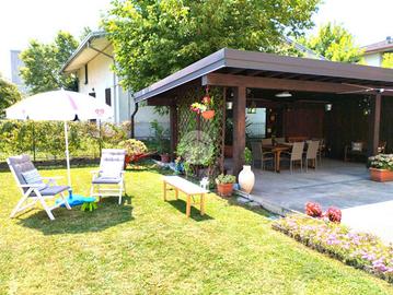 Al piano terreno si presenta un ampio giardino sfruttabile per grigliate all' aperto ed un porticato per cene o dislocazione autovetture.