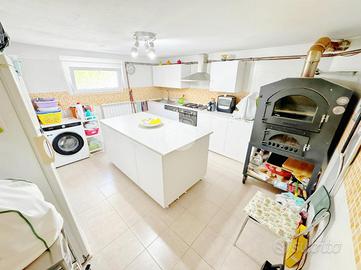 sempre nel piano terreno vi è un ampio garage, una cantina adibita a taverna, una lavanderia ed una stanza con forno per pizza e pane.