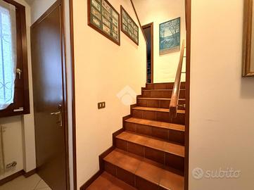 Treviso, zona San Pelaio, proponiamo in vendita porzione di bifamiliare disposta su due livelli con scoperto privato di circa 220 mq. Al piano terra, tramite ingresso, si accede all'ampio soggiorno con stube, ideale per momenti conviviali, alla cucina separata abitabile con accesso al giardino e un bagno/lavanderia finestrato. Al piano intermedio troviamo una comoda stanza di 14 mq da adibire ad eventuale quarta camera e una cabina armadio. Al primo piano vi è la zona notte composta da tre camere di cui due matrimoniali, una singola e due bagni finestrati, uno con vasca e uno con doccia. Completano la proprietà un garage di 22 mq al piano semi interrato. La pavimentazione è piastrellata nella zona giorno e parquet nella zona notte. Situata in zona tranquilla e residenziale.