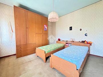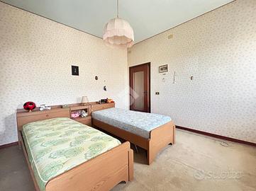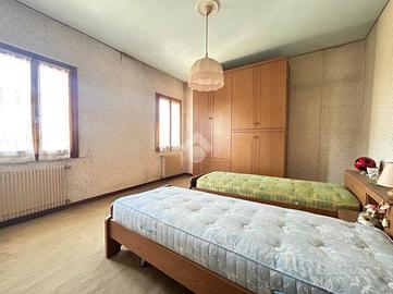 In zona Sant'Angelo a Treviso, proponiamo in vendita una porzione di bifamiliare edificata nel 1952 e sviluppata su due livelli fuori terra. L'abitazione gode di un'ampia area scoperta privata di circa 2.000 mq e dispone di un ingresso indipendente tramite cancello elettrico. L'immobile ha una superficie commerciale di 190 mq. Il piano terra è la parte attualmente abitata e meglio mantenuta nel tempo ed è composta da ingresso, soggiorno, cucina separata, una camera matrimoniale, un bagno completo di servizi con doccia, uno studio e un ripostiglio. Il primo piano, non utilizzato da diversi anni, ospita la zona notte composta da tre camere di ampie dimensioni e due bagni. Completa la proprietà un posto auto esterno. Le finiture vedono l'alternanza di gres e legno nella zona giorno e legno nella zona notte, con serramenti interni dotati di vetrocamera e oscuri in legno. L'impianto di riscaldamento è autonomo a metano con radiatori. L'abitazione necessita di lavori di ristrutturazione. Sita in zona residenziale immersa nel verde a 10 minuti dal centro di Treviso.