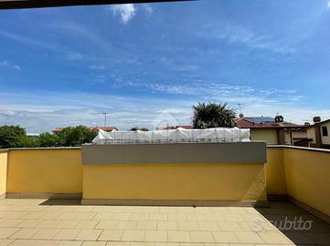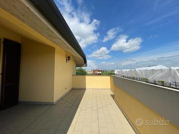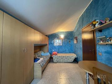 salendo le scale, al piano primo, due camere da letto di cui una con balcone privato, bagno con vasca ed un terrazzo dalle generose metrature dove si può godere di una vista magnifica.