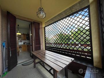 Entrando, al piano terra troviamo un ampio soggiorno, cucina aabitaabile con accesso alla veranda e al giardino tramite porta finestra, camera matrimoniale e bagno con vasca;