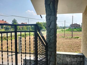 Un giardino in comune circonda la bifamiliare, creando un ambiente verde e tranquillo.