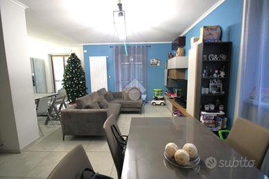 Al piano terreno l'ingresso si apre su un luminoso soggiorno doppio con cucina a vista e zona pranzo, un ambiente accogliente e conviviale, perfetto sia per la vita quotidiana che per ricevere ospiti. Completa il piano un comodo bagno di servizio finestrato.