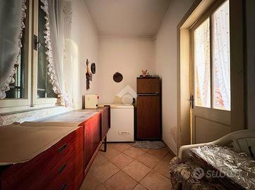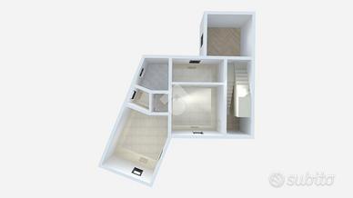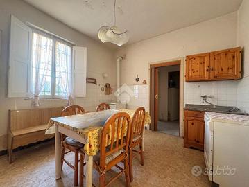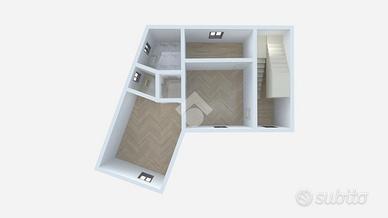 L'immobile è suddiviso su due livelli: al pianterreno si fa spazio l'ampia zona giorno con un primo bagno finestrato dotato di vasca, soggiorno e cucina abitabile separata; al piano superiore sono presenti le tre spaziose camere da letto e un ulteriore bagno finestrato con vasca.