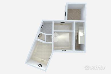 L'immobile è suddiviso su due livelli: al pianterreno si fa spazio l'ampia zona giorno con un primo bagno finestrato dotato di vasca, soggiorno e cucina abitabile separata; al piano superiore sono presenti le tre spaziose camere da letto e un ulteriore bagno finestrato con vasca.