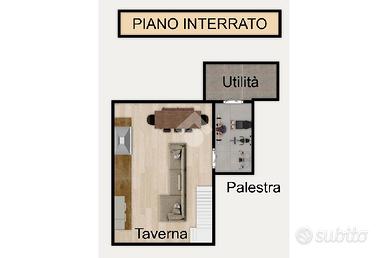 Al piano seminterrato invece completano la proprietà la taverna con camino e un comodo locale hobby attualmente adibito a palestra.