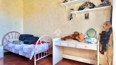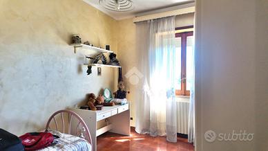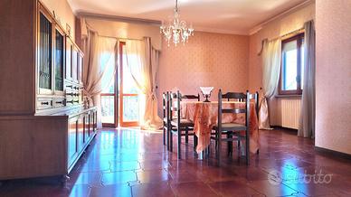In zona collinare e assolata, proponiamo in vendita un appartamento in Villa di 150mq. L'appartamento è al piano primo ed è composto da un disimpegno d'ingresso, un ampio salone con due balconi con soffitti alti che danno molta ampiezza, cucina abitabile, un bagno con doccia recentemente ristrutturato, 4 camere da letto di cui una con balcone esclusivo e un secondo bagno nella zona delle camere. La casa è esposta bene, ha una distribuzione interna perfetta ed è ideale per nuclei familiari grandi o per chiunque avesse bisogno di spazi importanti. Il giardino e il piazzale sono in comune con l'appartamento al piano primo. Servizi diretti.