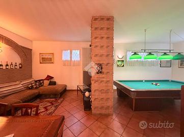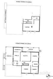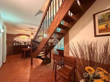L'immobile si sviluppa su due livelli. Al piano terra è presente un'ampia taverna, oltre ad un bagno con doccia. Il primo piano ospita l'abitazione principale composta da tre camere da letto, salotto con camino, cucina abitabile con affaccio su terrazza, un secondo bagno completo di doccia e vasca ed, infine, un'ampia veranda. Gli ambienti si distinguono per metrature generose ed ottima luminosità. Completano la proprietà un ampio garage, il giardino pertinenziale e tre ettari di terreno, elemento di particolare interesse per chi è alla ricerca di spazi esterni esclusivi e indipendenza in posizione tranquilla.