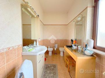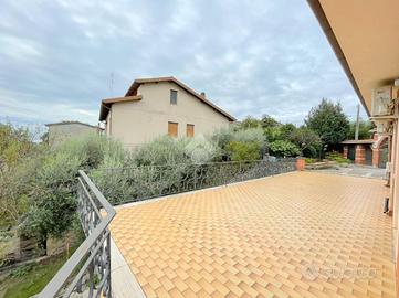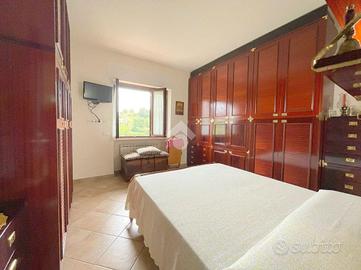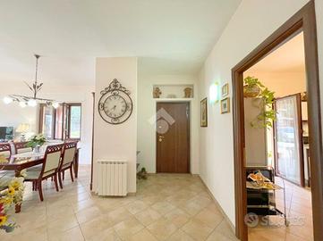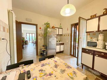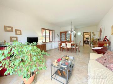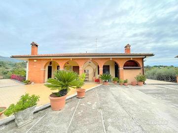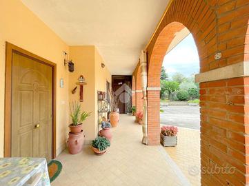 A Velletri in Via Sant'Eurosia, in posizione tranquilla ma a pochi km dal centro e da tutti i principali servizi, proponiamo in vendita una villa bifamiliare con ingresso indipendente, disposta interamente su un unico livello di circa 140 mq. La proprietà si distingue per la sua comodità e funzionalità, ideale per chi desidera vivere in una casa spaziosa, luminosa e pronta da abitare, senza rinunciare alla vicinanza con il centro cittadino. L'ingresso, preceduto da un accogliente portico, conduce all'interno dove troviamo una cucina abitabile ben organizzata e un ampio salone caratterizzato da una splendida luminosità naturale e dall'accesso diretto a una terrazza panoramica perimetrale a livello, perfetta per godere di momenti di relax all'aperto e di una piacevole vista aperta. La zona notte è composta da due camere matrimoniali, di cui una dotata di bagno privato con doccia, uno studio versatile ideale come cameretta o spazio per lo smart working e un secondo bagno, anch'esso con doccia. All'esterno, la proprietà dispone di una corte pavimentata di circa 300 mq, comoda anche per il parcheggio di più auto, oltre a un piccolo giardino che aggiunge un tocco di verde all'abitazione. Completano la struttura un ripostiglio esterno, un locale lavanderia e un locale caldaia, che rendono la casa completa di ogni comfort. La villa si presenta in ottimo stato, ristrutturata con cura e abitabile da subito, ideale per chi cerca una soluzione indipendente, ben rifinita e pronta all'uso, in una zona comoda, servita e a breve distanza dal cuore di Velletri.