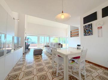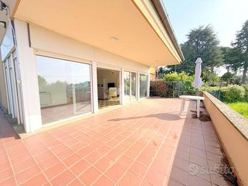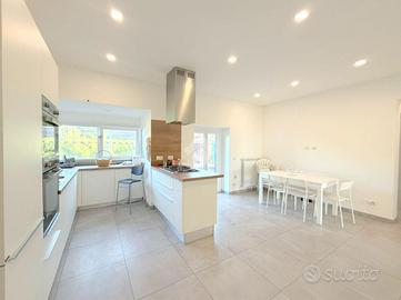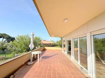 Situata in posizione strategica lungo l'Appia, in direzione Genzano, questa elegante porzione di villa bifamiliare con Entrata Indipendente, si inserisce in un contesto residenziale riservato e tranquillo, ideale per chi desidera vivere immerso nel verde senza rinunciare alla comodità dei collegamenti. La proprietà si sviluppa su due livelli per una superficie complessiva di 295 mq, offrendo ambienti ampi, luminosi e ben distribuiti. Al piano terra l'ingresso accoglie con un pratico armadio a muro, conducendo a un magnifico salone doppio caratterizzato da grandi vetrate che donano una straordinaria luminosità naturale e una piacevole continuità con l'esterno. Il camino classico impreziosisce l'ambiente, rendendolo caldo e accogliente. Dal salone si accede direttamente a un ampio terrazzo panoramico, perfetto per momenti di relax o convivialità. La cucina, abitabile e spaziosa, dispone di uscita diretta sul giardino, dove troviamo un'area attrezzata con forno a legna e zona barbecue, ideale per vivere appieno gli spazi esterni. Completa il piano una camera da letto e un bagno finestrato con doccia. Il primo piano si apre su una grande sala relax, uno spazio versatile perfetto come zona living secondaria, studio o area dedicata al tempo libero. La zona notte comprende tre camere da letto, tra cui una padronale con bagno interno e balcone privato, oltre a un ulteriore bagno a servizio del piano. Il piano seminterrato, accessibile sia internamente che dall'esterno, ospita un ampio garage che offre la possibilità di essere in parte destinato a sala hobby, palestra o spazio multifunzionale. La proprietà è circondata da un terreno di 3000 mq, che garantisce privacy, ampi spazi verdi e molteplici possibilità di utilizzo. Dotata di infissi nuovi con doppio vetro, portone blindato, cancello automatico, climatizzatori al piano superiore e pannelli fotovoltaici, la villa assicura comfort, sicurezza ed efficienza energetica. Luminosa, panoramica e con ottima esposizione, la c...