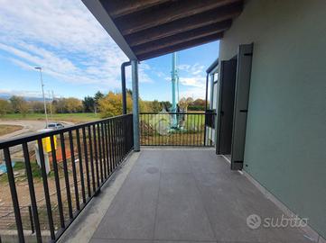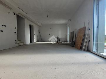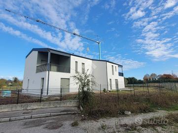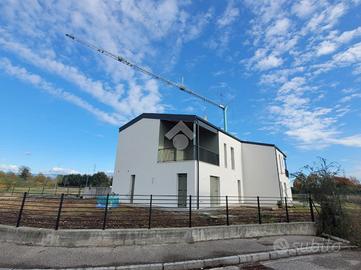 In zona lontanta dal traffico e vicinon ai principali servizi proponiamo una Porzione di Bifamiliare con giardino angolare di 368 mq. La soluzione è composta al piano terra da ampio soggiorno con angolo cottura luminoso con accesso al porticato, bagno finestrato e ripostiglio lavanderia, scala interna alla quale si accede al piano superiore dove troviamo due bagni finestrati, camera matrimoniale con porta finestra alla quale si accede ad un terrazzo coperto, camera e camera con porta finestra alla quale si accede ad un ulteriore terrazzo coperto. Garage singolo con basculante sezionale con accesso diretto all'immobile. La casa è dotata di cappotto esterno, impianto fotovoltaico da (6 Kwh), impianto di allarme, riscaldamento e aria condizionato con pompa di calore e ulteriori comfort isolanti termici e acustici. Disponibilità immediata.