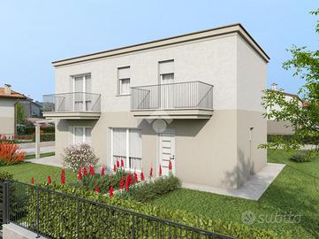 Bilocale in bifamiliare al piano primo con giardino.