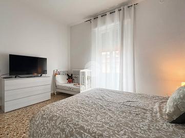 Proseguendo si trovano due camere da letto luminose, entrambe con affaccio su un secondo balcone, mentre sul lato opposto si sviluppa l'ampio soggiorno, arricchito da una zona dedicata a studio. Completa la disposizione interna un bagno finestrato.