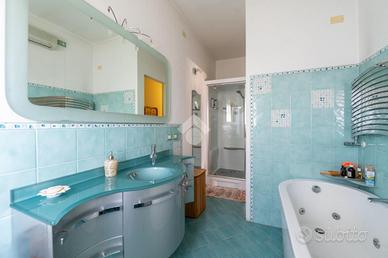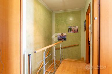Salendo al piano primo, caratterizzato da piacevole e caldo parquet, troviamo il reparto notte composto dalle tre camere da letto, di cui due matrimoniali di 15.40 mq e 16.00 mq, una camera singola di 10.50 mq, il tutto servito da un terrazzo abitabile ed ulteriore bagno finestrato fornito sia di vasca che di doccia.
