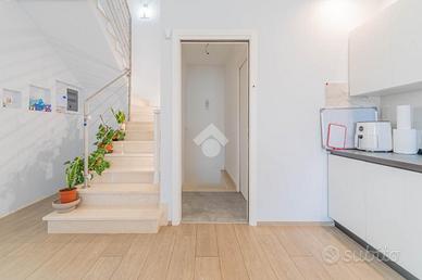 PORZIONE DI BIFAMILIARE DI RECENTE COSTRUZIONE COSA SAPERE SULL'IMMOBILE In una delle zone più ricercate e residenziali di Villanuova sul Clisi, comoda a tutti i principali servizi ma al tempo stesso riservata e tranquilla, proponiamo elegante porzione di villa bifamiliare con ingressi completamente indipendenti. L'abitazione è stata edificata nel 2011 e ultimata nel 2020, distinguendosi per finiture all'avanguardia e tecnologie di ultima generazione, pensate per garantire comfort abitativo, efficienza energetica e qualità della vita. La proprietà si sviluppa su tre livelli per una superficie commerciale complessiva di circa 234 mq, ed è circondata da un giardino privato di circa 100 mq, ideale per momenti di relax all'aperto. L'accesso avviene tramite ingresso pedonale indipendente, che conduce all'ampio portico e all'ingresso dell'abitazione. Varcato il portoncino, si viene accolti da una luminosa zona giorno di oltre 50 mq, con cucina a vista, uno spazio elegante e conviviale pensato per la vita quotidiana e per ricevere ospiti. Completa il piano un bagno di servizio, cieco, dotato di ventilazione meccanica forzata, preceduto da antibagno. Un'elegante scala in marmo accompagna al piano superiore, dedicato alla zona notte, dove troviamo due camere matrimoniali, collegate da un balcone, una camera singola dalle generose metrature e un raffinato bagno padronale, rifinito con gusto, completo di sanitari in ceramica, vasca idromassaggio e doccia con box in vetro. Scendendo al piano interrato, sempre tramite la scala in marmo, si apre una spaziosa taverna di oltre 40 mq, ambiente versatile e accogliente, ideale per cene conviviali o momenti di svago. Il piano ospita inoltre un terzo bagno adibito anche a lavanderia e un locale pluriuso, perfetto come palestra, studio o camera per gli ospiti. Dalla taverna, attraverso un portoncino blindato, si accede direttamente all'autorimessa doppia, dotata di basculante sezionale motorizzata. Dal punto di vista impiantisti