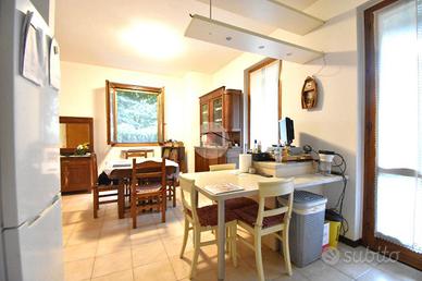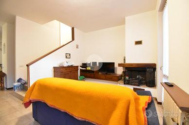 Porzione di villa bifamiliare di testa con esposizione ovest/sud/est in contesto residenziale e signorile in Oreno di Vimercate, in zona tranquilla e verdeggiante.