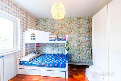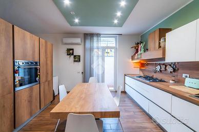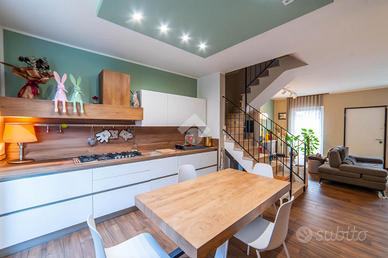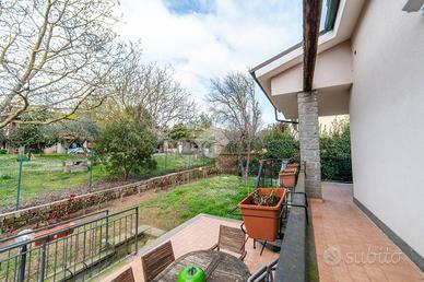 Porzione di bifamiliare ristrutturata con giardino - Paparano Classe energetica B In zona Paparano, in contesto tranquillo e riservato, proponiamo in vendita una splendida porzione di bifamiliare disposta su tre livelli, ideale per chi desidera indipendenza, comfort e spazi ben organizzati. L'immobile è circondato da un giardino privato di circa 300 mq, in parte pavimentato e in parte erboso, perfetto per vivere gli spazi esterni in ogni stagione, tra relax e momenti conviviali. L'abitazione si presenta in ottime condizioni grazie alla ristrutturazione esterna eseguita nel 2023 con Superbonus 110% e agli interventi interni realizzati al momento dell'acquisto. Al piano terra si sviluppa la zona giorno, composta da un ampio e luminoso soggiorno con angolo cottura, un bagno finestrato con doccia e accesso diretto alla lavanderia e al giardino. Il primo piano ospita una spaziosa camera matrimoniale con doppia finestra, un bagno finestrato con doccia e una cameretta con accesso a una grande terrazza, collegata al giardino. Al secondo e ultimo piano mansardato troviamo una zona relax facilmente trasformabile in terza camera, un'ulteriore camera da letto e un bagno con vasca. La proprietà è completata da un garage spazioso e da una serie di dotazioni pensate per garantire comfort ed efficienza: cappotto termico, tetto coibentato, infissi in doppio vetro con interno in PVC ed esterno in alluminio, persiane blindate, impianto di antifurto e videosorveglianza, colonna per la ricarica di auto elettriche e lavanderia. Dal punto di vista energetico, l'immobile è dotato di impianto fotovoltaico da 6 kW con batteria di accumulo da 15 kW, raggiungendo la classe energetica B. Completano le dotazioni la presenza di fossa settica e allaccio all'acqua Talete. Una soluzione moderna, efficiente e pronta da vivere, perfetta per chi cerca una casa indipendente con ampi spazi interni ed esterni, in un contesto tranquillo ma ben collegato.