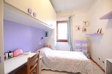 Attraverso un disimpegno si accede alla zona notte, composta da un bagno finestrato con vasca, una camera singola e una seconda camera matrimoniale con accesso diretto al terrazzo.