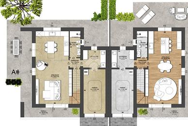 - VILLAGGIO PUCCINI - Sant'Alberto di Zero Branco, prossima realizzazione di biville su nuova lotizzazione. L'abitazione si sviluppa su due livelli ed è caratterizzata da spazi ampi e luminosi. Al piano terra, il cuore della casa è un elegante open space di 42,62 mq, con possibilità di separare gli ambienti attraverso una vetrata. Completano il livello un bagno di servizio di 4,61 mq, un disimpegno, una lavandera e un garage privato di 17,41mq. Il piano primo ospita una zona notte intima e armoniosa, camera padronale di 14,13 mq con cbina armadio e bagno, una camera matrimoniale di 14,41e una terza camera di 11,90 mq completa il piano un bagno di 5,06 mq e una terrazza di 25mq. All'esterno, un giardino privato su tre lati di circa 320mq circonda l'abitazione. Materiali selezionati, finiture di alto livello, impianto fotovoltaico, pompe di calore e domotica integrata garantiscono comfort elevato, efficienza energetica e uno stile di vita moderno e sostenibile. Maggiori informazioni in agenzia.
