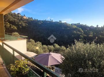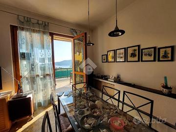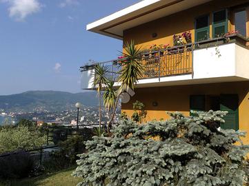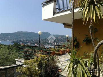 Zoagli - Nella collina di Sant'Ambrogio, a due chilometri di distanza dal castello di Rapallo, proponiamo in vendita un appartamento in villa libero su 4 lati, con accesso carrabile e vista mare su Portofino. L'immobile è composto dall'intero ultimo piano e dispone di un accesso comune con zona privata per posteggiare tre auto oltre ad un accesso secondario privato. L'appartamento è composto da un ingresso, un ampio soggiorno con affaccio sul terrazzo vista mare, dalla cucina anch'essa con accesso alla terrazza, da tre camere da letto, tutte con accesso alla balconata perimetrale e due bagni di cui uno finestrato. Subito usciti dall'abitazione abbiamo diversi spazi esterni, alcuni lastricati ed alcuni a giardino. Quale pertinenza vi è un'area privata per posteggiare comodamente tre auto, all'interno del cancello elettrico che separa la proprietà dalla via principale. L'esposizione è ottima, esponendo su tutti e quattro i lati con affaccio principale verso sud e verso Portofino. La vista è aperta sul golfo e sulla collina di Sant'Ambrogio, rendendo soleggiato ogni angolo della casa per tutta la giornata. L'immobile, essendo, in parte, interamente da rinnovare, si presta sia per il mantenimento dell'attuale divisione sia per una risistemazione interna in base alle proprie esigenze. La zona è tranquilla, soleggiata ed a 5 minuti di macchina dal centro storico di Rapallo, il che la rende ideale sia per prima casa che per casa vacanza senza i rumori della città. Il riscaldamento è autonomo, senza alcuna spesa condominiale.
