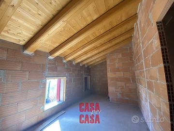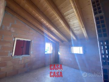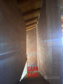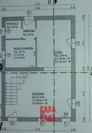 L'abitazione si sviluppa su due livelli; al piano terra si accede tramite un comodo disimpegno con finestra, troviamo un bagno con zona lavanderia, la zona giorno e un ampio soggiorno di circa 20 mq. Una spaziosa scala conduce al piano superiore, caratterizzato da un comodo disimpegno. La zona notte ospita due camere da letto di circa 16 mq ciascuna e un bagno con finestra. Un ulteriore elemento distintivo è rappresentato dai soffitti con travi a vista.