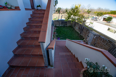 Esterno:terrazzo perimetrale collegato alla scala, giardino in parte pavimentato, garage di 31 mq.