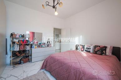 La zona notte è composta da tre camere da letto ben distribuite e da un bagno finestrato completo di box doccia. Completa la parte interna un pratico locale ripostiglio, utile come spazio di servizio.
