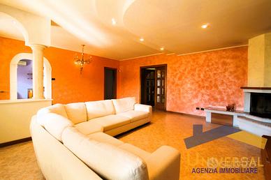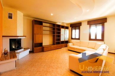 Dall' ingresso, accediamo allo spaziosissimo salotto con caminetto, comunicante con la cucina separata ed abitabile con sala da pranzo ed il bagno finestrato con doccia.