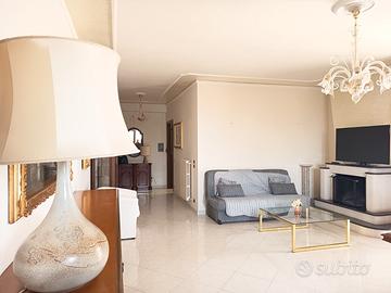 L'immobile ubicato al Primo Piano, si sviluppa su un unico livello ed è suddiviso in ampio salone con camino, cucinotto, 2 camere da letto ( di cui una con bagno all'interno ) bagno padronale con vasca idromassaggio e vano lavanderia.
