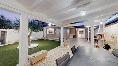 In via Capri, a pochi passi dal mare e dalle splendide spiagge del Poetto, sorge questa porzione di bifamiliare che unisce il fascino di una residenza storica degli anni '80 con l'attualità di una ristrutturazione totale, eseguita con materiali ricercati, soluzioni tecnologiche all'avanguardia e una cura dei dettagli che la rendono unica. L'ingresso dalla strada principale si apre su un cortile antistante, accessibile sia pedonalmente che con l'auto, arricchito da una zona lavanderia funzionale e perfettamente integrata. Da qui prende forma un percorso abitativo che unisce eleganza, comfort e innovazione. Al piano terra domina la zona living open space, luminosa e accogliente, con cucina a vista e soggiorno che dialogano con l'esterno grazie alle ampie aperture sulla veranda coperta, vero cuore della casa, ideale per pranzi conviviali e momenti di relax. Sullo stesso livello si trova un bagno completo di doccia, moderno ed elegante. La zona notte, situata al piano superiore, è oggi composta da due ampie camere matrimoniali di generose dimensioni. Originariamente tre, le stanze sono state ripensate e ridistribuite: due camere sono state fuse per creare un'unica, straordinaria matrimoniale doppia, che regala spazi ariosi e un comfort superiore. A completare il piano, un secondo bagno con doccia arricchito da finiture di pregio. Il seminterrato ospita una taverna accogliente e versatile, perfetta per ricreare un ambiente conviviale, un'area hobby o fitness, affiancata da una dotazione tecnica di grande valore: una pompa sommersa per il tiraggio dell'acqua, che garantisce sicurezza e funzionalità in ogni stagione. All'esterno, gli ampi spazi curati e le verande invitano a vivere all'aperto in ogni momento dell'anno, tra giornate di sole e serate sotto le stelle, con la città a pochi minuti e il mare a due passi. Questa proprietà non è solo una casa: è una residenza esclusiva che unisce eleganza, comfort e innovazione tecnologica, offrendo uno stile di vita unico.PO539