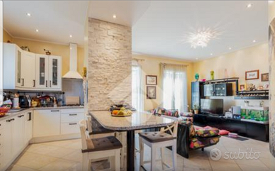 Vendesi porzione di bifamiliare al primo piano completamente ristrutturata con termo a pavimento, pannelli solari per acqua calda, termocappotto, grate, infissi in alluminio con garage di 70 mq.