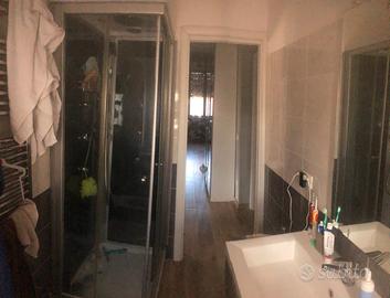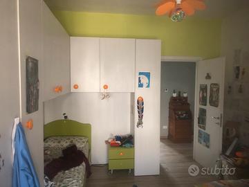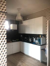 Ingresso con corridoio, angolo cottura a vista su sala da pranzo e soggiorno, 1 bagno con doccia multi funzione, ampia camera da letto e ampia cameretta.