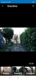 Esternamente oltre al giardino di 180m2 caratterizzato da alberi da frutta e un angolo orto ,troviamo una lunga pompeiana che rende accessibile l'esterno anche in presenza di maltempo.Sempre al piano terra c'è un ampio garage attualmente adibito a tavernetta .