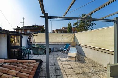 La parte molto interessante della soluzione è la terrazza di oltre 30 mq al piano superiore e la possibilità di sopraelevare il tetto per poter creare un ulteriore appartamento o allargare quello già esistente, in quanto nel 2016 è stato già approvato dal comune di Verona e poi non realizzati