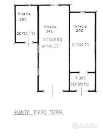 Al piano terra è presente un garage di 37,00 mq, un locale ripostiglio, una cantina di 10,00 mq, una taverna, un bagno, una cucina di servizio ed un deposito/ripostiglio attrezzi di 169 mq.