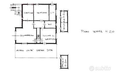 Al piano terra è presente un garage di 37,00 mq, un locale ripostiglio, una cantina di 10,00 mq, una taverna, un bagno, una cucina di servizio ed un deposito/ripostiglio attrezzi di 169 mq.