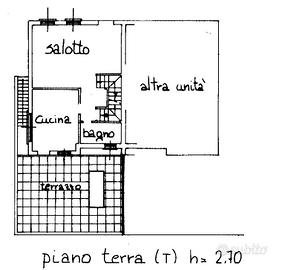 Trattasi di una porzione di casa composta da salotto, cucina, bagno e terrazzo al piano terra; disimpegno, tre camere, bagno e due terrazzi al piano primo;