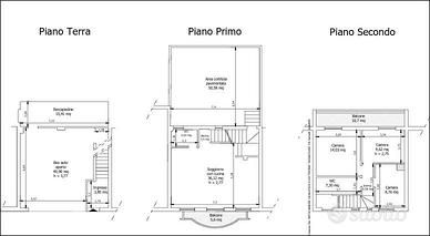 L'ingresso si trova al piano terra, adiacente a un box auto aperto. Sempre al piano terra è presente unintercapedine adibita a ripostiglio. Al primo piano si trovano il soggiorno con angolo cottura, un bagno, un balcone e una corte esterna pavimentata, di pertinenza dellimmobile. Al secondo piano si sviluppa la zona notte, composta da tre camere e un bagno.