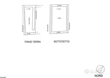 Accesso dal piano terra tramite due gradini che permettono l'accesso diretto all'abitazione, composta da ingresso su disimpegno poi, entrando subito a destra, c'è una scala in legno per accede al piano seminterrato (è seminterrato solo rispetto alla via Fonti Giannino) dove si trova un soggiorno comunicante con una cucina e un bagno, a sinistra dell'ingresso c'è un locale adibito a lavanderia e ripostiglio. Completa il resto del piano terra una camera e un piccolo wc non dotato di luce diretta. Un'altra scala in legno dal piano terra permette l'accesso al piano sottotetto individuato sia catastalmente che urbanisticamente soffitta.