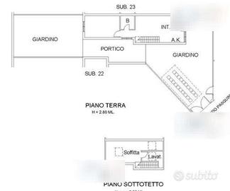 Trattasi di una abitazione composta da piano terra con soggiorno, portico (attualmente chiuso e utilizzato come cucina), una camera e un bagno. Al medesimo piano vi sono due ampi giardini e al piano sottotetto da soffitta e locale lavatoio (attualmente utilizzato come bagno).
